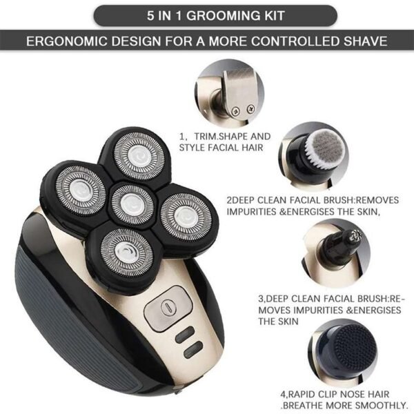 Multifunctional electric shaver : this men’s Shaver provides five detachable heads , including a nose and ear trimmer and a Facial Cleansing Brush, meeting everything you need for hair trimming and facial care