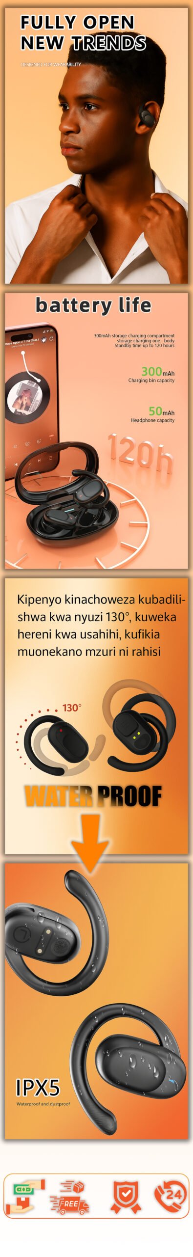 🎧 Headphones za Open Ear – Earbuds za Michezo zenye Bluetooth na Marekebisho 🎶